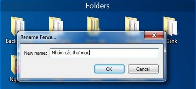 Để thuận tiện hơn trong việc quản lý, bạn có thể kích chuột phải vào từng nhóm biểu tượng, chọn Rename Fence, từ hộp thoại hiện ra, bạn đặt tên mới cho nhóm biểu tượng sao cho phù hợp với bản thân.