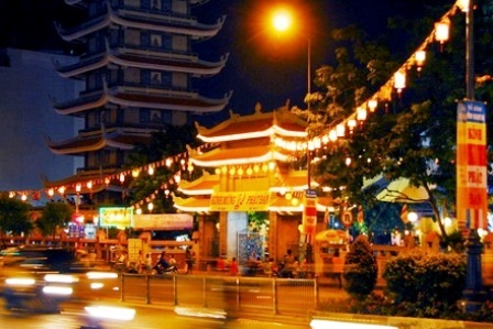 Khung cảnh lung linh tại chùa Vĩnh Nghiêm (quận 3)