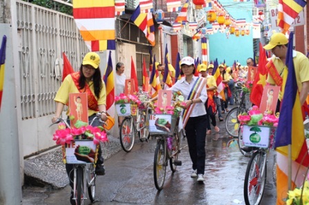 Các bạn trẻ đạp xe mừng ngày Đức Thế Tôn ra đời (Văn Thành)