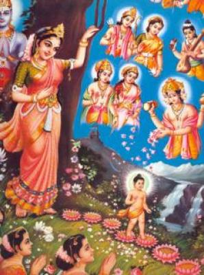 đất trời, hay chư thiên chúng tiên nữ chào đón bậc xuất thế ra đời, cũng như những