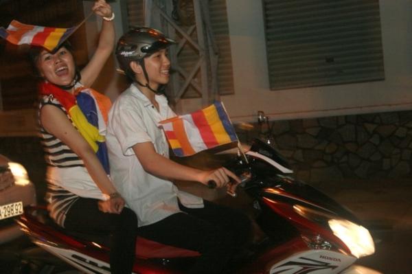 Điều đáng mừng là mỗi năm ngày càng có nhiều gương mặt trẻ tham gia diễu hành cùng những chiếc xe hoa tự sáng tạo rất “độc” hòa vào không khí ngày vui Khánh đản. Điều thú vị ở những người Phật tử trẻ là thể hiện niềm vui đầy nhiệt huyết theo cách riêng của mình, xe ô-tô, xe máy, xe đạp và cờ ngũ sắc phấp phới tung bay, hoa tươi, cả những chiếc áo trắng có hình cờ ngũ sắc được thiết kế rất sáng tạo… Họ nối nhau trong dòng người với tiếng cười và niềm hạnh phúc như không bao giờ dứt. Họ đã làm nên sự một sức sống mới, ấn tượng, có lúc tưởng chừng niềm vui vỡ òa nhưng chưa bao giờ “nhóm” một chút xô bồ. Ấy là điều tôi nhận ra họ…