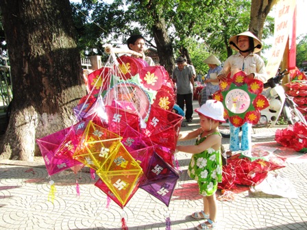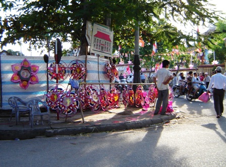 Những chiếc lồng đèn ngôi sao, hoa sen, trái ú...xinh xắn nhiều màu sắc lung linh dưới nắng, dưới những tàng cây cổ thụ hai bên lề đường Trần Hưng Đạo, Phan Bội Châu, Sư Liễu Quán...đã góp phần tạo lên sắc màu Phật đản Huế thật đặc trưng. Đã có rất nhiều gia đình Phật tử đã mua về và treo trước cửa nhà cúng dường Phật đản.
