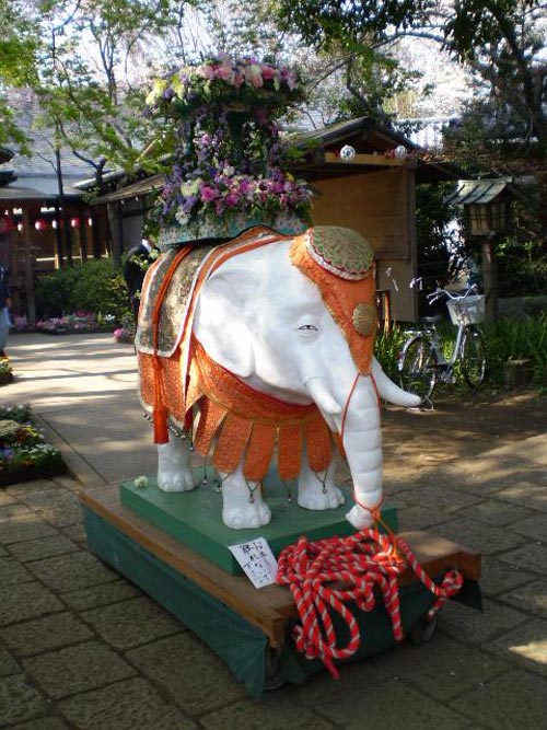 cạnh tượng voi trắng là một tháp nhỏ được kết đầy những loại hoa tươi