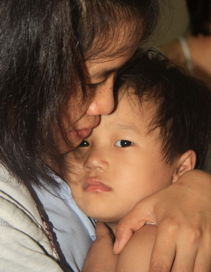 Người phụ nữ trong tấm ảnh này vừa tìm lại được con gái 3 tuổi sau một buổi sáng thất lạc. Khuôn mặt hạnh phục, đầy trìu mến của cả hai mẹ con làm các thầy ở chùa Hoằng Pháp và phật tử vui lây khi chính các thầy đã nhận ra cháu bé lạc mẹ, dỗ dành và đi tìm mẹ về cho bé.