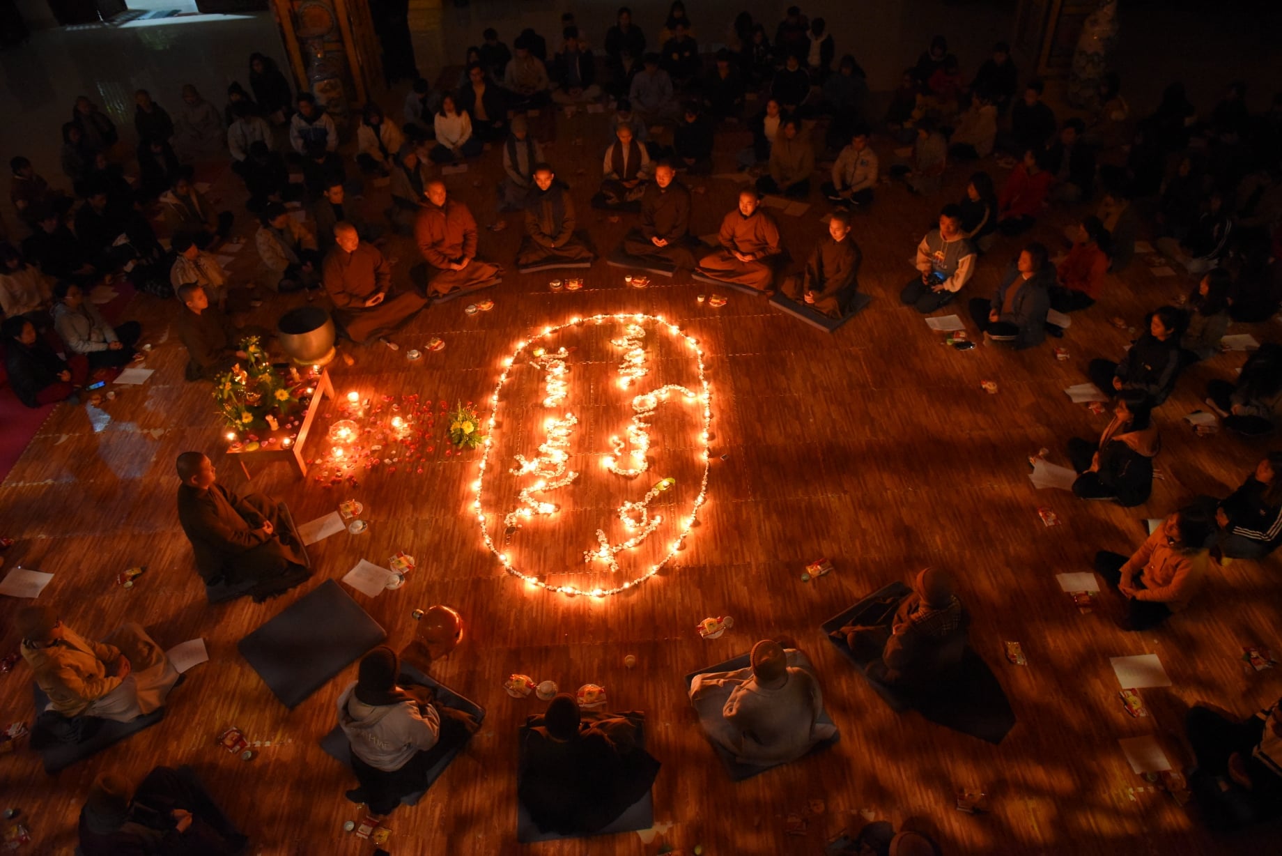 Thiền tọa an nhiên ngắm bóng hồng.