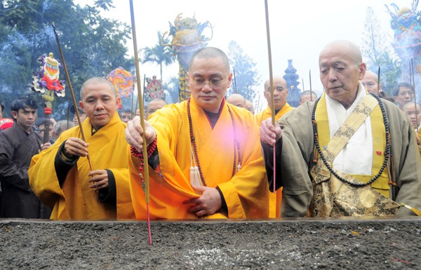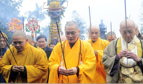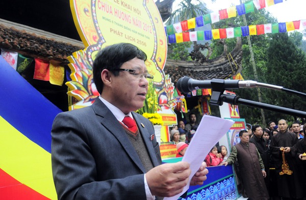 Thượng Tọa Thích Minh Hiền đại diện lãnh đạo thành phố và địa phương niêm hương cúng phật khai hội chùa Hương.