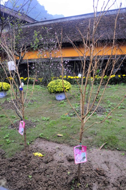 Hoa anh đào do Hòa Thượng Yoshimizu Daichi Nhật Bản tặng được trồng tại vườn đào sau Tam Bảo Chùa Thiên Trù.