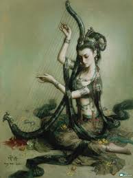 龜茲飛天又是另一種樣子,她們雙腳相交,稍稍分開。