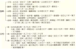 然而倘使如此表面化地觀察熙仲的為人,我們便犯了大錯!因為《資鑑》自周昭王二十四年佛陀降生講起,原本無需述及中國上古的歷史,然而其書卷1開頭處有〈三皇表〉、〈五帝表〉和〈三代表〉(頁2正面背面)如下: