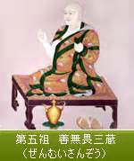 善無畏(正翻淨師子),中印摩揭陀國人。他的先代出身剎帝利,因國難出奔烏荼,做了國王,承傳到他,十三歲就依父親佛手王的遺命即位。兄弟們不服,起兵相爭,他於平亂之後,讓位於兄,決意出家。先至南印海濱覓得殊勝招提,修習法華三昧。又由水路搭乘商船,遊歷中印諸國,密修禪觀。及到摩揭陀,訪國王,王妃原是他的女兄,他們瞭解到善無畏捨位出家的經過,大加敬重,由是名聲遠播。他曾把自己所攜傳國寶珠施給那爛陀寺,裝飾在大佛像的額端上。後歸依寺內以禪、密著名的長老達磨鞠多,研習密教,受到鞠多的賞識,將總持瑜伽三密及諸印契完全傳授給他,得了灌頂,號為三藏。他又周行各地,遍禮聖跡,方便誘化。八十歲左右,依著師教東行弘法,攜帶梵本,經過北印迦濕彌羅、烏萇等國,到了素葉城,應突厥可汗之請,講《毗盧遮那經》,然後再前進通過天山北路,達於西州(今新疆吐魯番東南、寶應)。因為他的聲譽早已傳至漢地,唐睿宗特派西僧若那和將軍史憲,遠出玉門迎接。他於玄宗開元四年(716)到達長安,被禮為國師。先住興福寺南塔院,後遷西明寺;玄宗並嚴飾內廷道場,尊為教主。開元五年(717),開始在西明寺菩提院譯出《虛空藏菩薩求聞持法》一卷。寫定進內之後,即有敕令將帶來的梵本全部送藏內廷。從此他便注意另訪未譯的密典梵本。先有江陵(今湖北省江陵縣)無行求法,遊歷南海、東印、中印各地,曾住大覺、那爛陀等寺聞法,並訪求梵本。學畢回國,途經北印病卒(見義淨《大唐西域求法高僧傳》卷下),所將梵本,由同行者帶回中土,存於長安華嚴寺。善無畏和一行同往選取前未譯過的重要密典數種。開元十二年(724),他隨玄宗到洛陽,於開元十三、十四年間,在奉先寺譯出《大毗盧遮那神變加持經》等三種。開元二十年(732),他曾請求還歸印度,優詔慰留。二十三年(735)得病,十一月卒於洛陽大聖善寺,年九十有九。開元二十八年(740)葬於龍門西山廣化寺。肅宗乾元元年(758),於塔院側建碑,其弟子李華撰文。