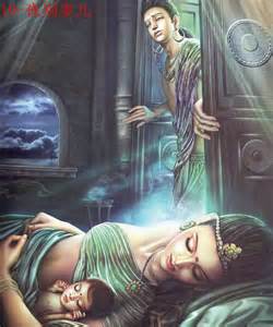 淨飯王心情沉痛,拉著太子的手說:悉達多!如果你能有兒子的話,我就同意你去出家。太子馬上用手向耶輸陀羅的腹部一指,說:「父王,她有娠了。」此時,耶輸陀羅吃了一驚,就得了胎。這就是指腹成胎的故事,也說明了釋迦牟尼佛的不可思議神通妙方,是超出我們一般人常識所能想像的。」後來經過了六年之久,才生下了一個兒子,名字叫作「羅侯羅」。