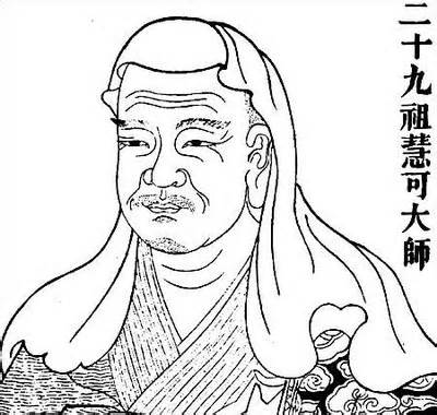 慧可,一名僧可,是中國禪宗的第二祖。俗姓姬,虎牢人(今河南榮陽縣)。他少為儒生時,博覽群書,通達老莊易學。出家以後,精研三藏內典。年約四十歲時,遇天竺沙門菩提達摩在嵩洛(今河南嵩山—洛陽)遊化,即禮他為師。慧可從達摩學了六年,精究一乘的宗旨。達摩寂後,他即在黃河近邊一帶韜光晦跡;但因早年已名馳京畿,許多道俗前訪問道,請為師範,他隨時為眾開示心要,因而道譽甚廣。