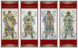 四大天王也被稱為“風調雨順”。中國佛教徒認為南方增長天王持劍,司風;東方持國天王拿琵琶,司調;北方多聞天王執傘,司雨;西方廣目天王持蛇,司順。組合起來便成了“風調雨順”。