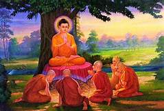 佛陀在正覺以後,想起救渡眾生的大事因緣,心自思惟道:「我所證悟的真理,是與世人錯覺所見的相違。世人所沈迷的快樂,我了知是苦的根源;世人所求取的五欲六塵,我了知是不實在的;我所證悟的真如實相,是世間的真理,但人們卻不能相信;我所正知正覺,與世人的偏邪私欲都是相違的。一切眾生都沈淪在貪瞋邪見的深淵中,怎麼了解這甚深微妙的解脫真理呢?我還是涅槃吧!」