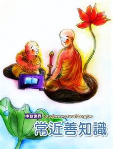 《華嚴經》也講:「善男子,若諸菩薩,為善知識正所攝受,不墮惡趣。若諸菩薩,為善知識所思念者,則不違越菩薩學處。若諸菩薩為善知識所守護者,勝處世間。若諸菩薩承事供養善知識者,於一切行不忘而行。若諸菩薩,為善知識所攝持者,諸業煩惱難以取勝。」因此,親近善知識的功德極大。又說:「善男子,若諸菩薩,隨喜知識所有教誡,諸佛世尊,心正歡喜。若諸菩薩,於善知識所有言教,安住無違,近一切智。於善知識,言教無疑,則能近於諸善知識。作意不捨善知識者,一切利義,悉能成辦。」可見親近善知識有不可思議的功德。如剛才說的一個普通的木塊,幾十年和檀香放在一起,當你把它取出時,雖不是檀香,但它的香味和其他檀香一樣,非常微妙。同樣,若能親近善知識,長期聽聞善知識的教誨,即使自己沒有學過深奧的教理,你也能夠得到非常高的智慧和廣博的佛法知識。有句俗語說:「聽君一席話,勝讀十年書。」這就是說善知識的功德會感染周圍的人。