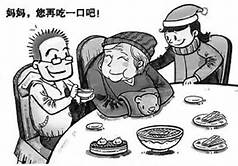 中國人絕大多數都是孝敬父母與長輩的。孝敬的方式, 通常是供奉甘旨,把最補的補品給父母吃,例如:燕窩,高麗參,魚肚之類,買不起這些,最少也得供養大魚大肉、牛肉、豬肉、羊肉、果子狸、烤雞、燒鴨、大龍蝦、大閘蟹、大王蟹、海參、魚翅、海蚌、海螺、鱔魚、甲魚、烏龜、烏魚子、魚子醬、蛇肉、三蛇羹、 龍虎鳳、三蛇酒、虎骨酒、田雞、牛扒、豬扒、鹿肉、沙文魚........各種山珍海味,名貴補品,不惜千金,平時孝養唯恐不足,特別是父母壽辰,生日宴會,更加奢侈豪華,吃盡人間美味,敬盡天下美酒,這才算是孝子賢孫?