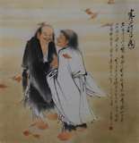 《大平廣記》云:「寒山子者,不知其名氏,大歷中隱居天臺翠屏山,其山深邃,當暑有雪,亦名寒巖,因自號寒山子。好為詩,每得一篇一句,即題於樹間石上,有好事者,隨而錄之。凡三百餘首,多述山林幽隱之興,或譏諷時態,能警勵流俗,桐柏徵君徐靈府,序而集之。分為三卷,行於人間,十餘年忽不復見。拾得者,因豐干於赤城路側得之,可十歲,委問無家,付庫院養之,故名拾得。豐干身材肥大,高長七尺,住佛殿後僧院,碾米供眾。三人如手足,均善詩,故相互交遊。」