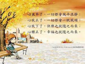 屏所接見室裏有二幅聯:(一)聲聲句句頻叮嚀,時時刻刻念親恩。(二)親情滋潤如甘露,彌陀慈光照我心。親情,友情,愛情,佛菩薩的情,處處都是洋溢著情。由於接見室的二幅聯,我深深體會到長官對我們的親情,否則不會把這二幅聯掛在牆壁上頻叮嚀。我們二工場的主管王承璽先生就是最好的例子。主管長期免費供應筆紙讓我們有興趣的同學能自願利用午休時間抄經,並且教導我們對於抄經應有的觀念和正確的方法。原本只能享有數分鐘的念佛,但現在卻可以利用午休時間抄寫佛經,我心中歡喜不已。雖然犧牲了午休,但卻能換取心中更多的平靜,絕對值得。也因此精神一天比一天集中,心情一天比一天的開朗,臉上也多出了微笑,同學之間也增加了和氣,真想不到只是抄寫經文,就改變了這麼多,如果能夠皈投在佛的座下,好好修學佛法,老老實實念佛,那不就受益更多了嗎?