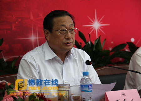 忻州市委副書記、市長鄭連生代表市委、市政府向研討會的召開表示熱烈祝賀。他表示,此次研討會在忻州召開,不僅是五台山的大事,更是忻州的盛事,五台山融漢傳佛教與藏傳佛教於一山,是佛教界各大流派最全的聖地,也是中國歷史上釋、儒、道三大文化相互激盪,共生共存、實現大同的重要場所,傳承、保護、 弘揚中國文化是海峽兩岸共同肩負的使命。希望通過此次研討會,忻州與全國各地文化界、宗教界的交流、溝通更加深化、暢通,忻州與海峽彼岸文化界、宗教界來往更加頻繁,同時堅信只要打開心門,敞開心懷,我們孜孜以求“大同世界”的目標就會與我們越來越近。