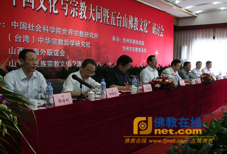 佛教在線山西訊2012年7月6日,海峽兩岸“中國文化與宗​​教大同暨五台山佛教文化”研討會開幕式在五台山五峰賓館舉行。此次研討會由中國社會科學院世界宗教研究所、(台灣)中華宗教哲學研究社、省海外聯誼會、省民族宗教文化交流服務中心聯合舉辦。為期三天的研討會期間,與會專家學者將圍繞“宗教大同思想與實踐”和“中國傳統文化與哲學”、“五台山宗教文化”、“中國傳統文化與宗教藝術”等方面進行廣泛深入的互動研究和交流。此次研討會分七場,與會專家學者分別發言、討論、交流。