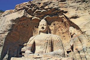 The sitting Buddha in Cave No. 20 is the signature for the Yungang Grottoes, frequently found on postcards and other souvenirs.