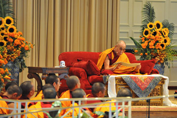 His Holiness the Dalai Lama teaching at Glenn Memorial Auditorium at Emory University in Atlanta, Georgia on October 10, 2013. Photo/Sonam Zoksang