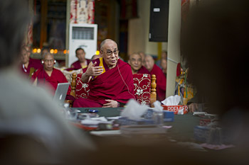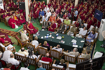 | | His Holiness the Dalai Lama speaking at the Mind and Life XXVI Conference held at Drepung Monastery in Mundgod, India on January 17-22, 2013. Photo/Tenzin Choejor/OHHDL |