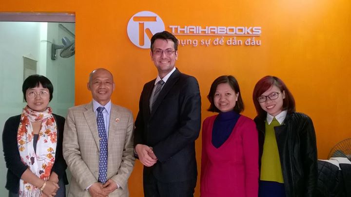Trong chuyến công tác Việt Nam lần này, anh Jean Sabastien Dufresne dành thời gian đến thăm Công ty sách Thái Hà của chúng tôi. Lý do không phải bởi chúng tôi xuất bản nhiều sách Phật giáo, sách hướng thiện, sách khám phá bản thân và sách dạy làm người mà bởi đây là công ty sách đầu tiên của Việt Nam cam kết 100 sách xuất bản có bản quyền. Lãnh đạo các doanh nghiệp trên thế giới, nhất là phương Tây, rất coi trọng sở hữu trí tuệ, rất thích những ai làm việc nghiêm túc, sống tử tế, không ăn cắp, không làm bậy.