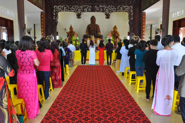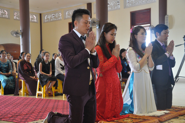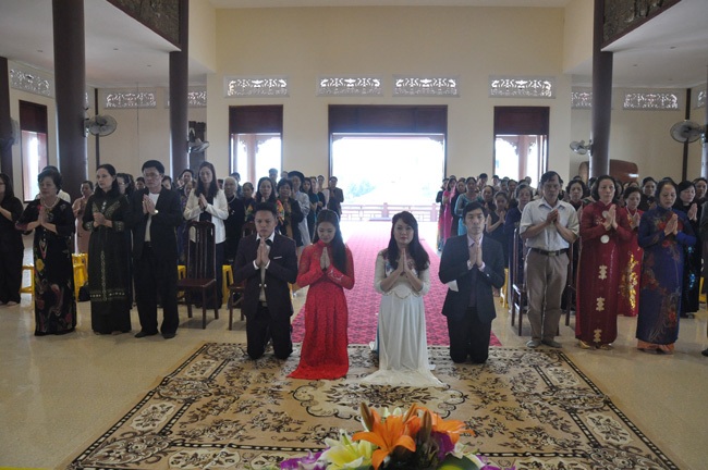 Nhận thức được ý nghĩa tổ chức lễ cưới tại chùa là tạo điều kiện cho tân lang và tân nương quay về nương tựa ba ngôi báu, cũng như được sự gia hộ của chư tôn thiền đức chứng minh, sáng thứ Bảy  ngày 29 tháng 11 năm 2014 (nhằm ngày mùng 8 tháng 10 năm Giáp Ngọ) bốn bên gia đình Phật tử đã đến chùa Diên Quang xin tổ chức lễ hằng thuận cho cặp tân lang –  tân nương: Nguyễn Mạnh Hà, Hoàng Khánh Ly; và Nguyễn Anh Tuấn, Trần Kim Chung.
