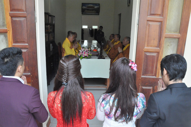 Trong dịp này, Thượng tọa cùng quý chư Tăng đã gửi tặng các cặp tân lang, tân nương phần quà chúc phúc và giấy chứng nhận cho các đôi bạn trẻ đã nên Vợ thành Chồng kể từ ngày hôm nay.