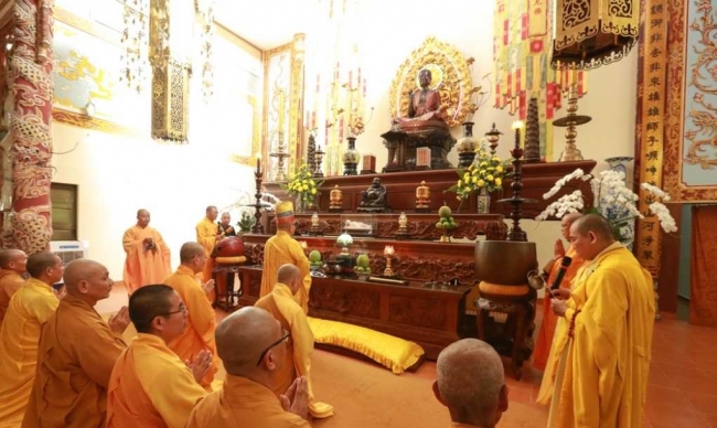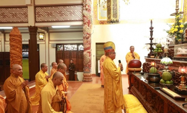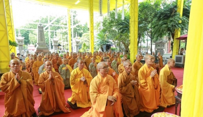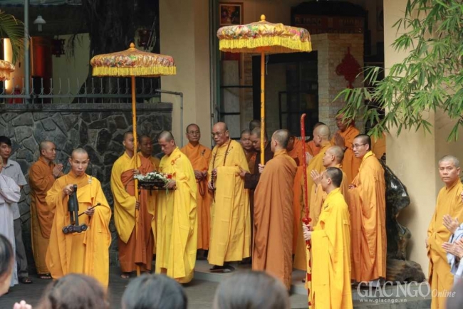 HT.Thích Quang Đạo, Thành viên HĐCM GHPGVN quang lâm chứng minh, niêm hương bạch Phật. HT.Thích Minh Châu, Trưởng ban Nghi lễ GHPGVN tỉnh Khánh Hòa sám chủ. Chư tôn đức giáo phẩm, môn đồ pháp quyến, chư Tăng Ni và đông đảo Phật tử đã thành kính tham dự, cầu nguyện và thọ tâm tang.