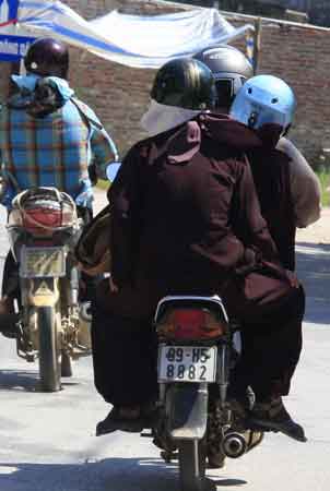 Ngồi lân la tại một quán nước chè ngay tại thị trấn Phố Mới (Quế Võ, Bắc Ninh) nhìn thấy rất nhiều xe máy kẹp hai, kẹp ba chở các "sư" đi qua. Chúng tôi thắc mắc với nhau: "Sư gì mà lại vi phạm luật giao thông thế kia". Nghe vậy, bà bán hàng nước mới bĩu môi đầy miệt thị: "Sư gì cái loại ấy. Chỉ đi lừa thiên hạ là giỏi".