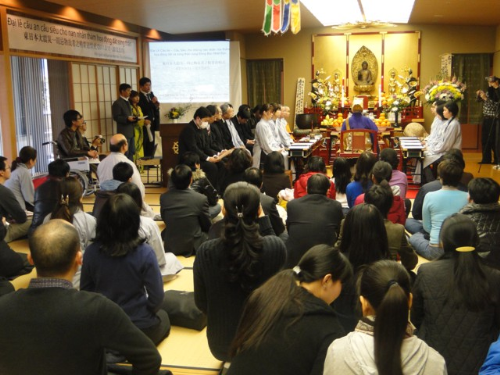 Chiều 11/3, Hội người Việt Nam tại Nhật Bản đã phối hợp với chùa Nisshinkutsu tổ chức Đại lễ cầu an, cầu siêu cho các nạn nhân động đất, sóng thần tại vùng Đông Bắc Nhật Bản nhằm thể hiện tinh thần đoàn kết và ủng hộ nhân dân bị gánh chịu thảm họa.