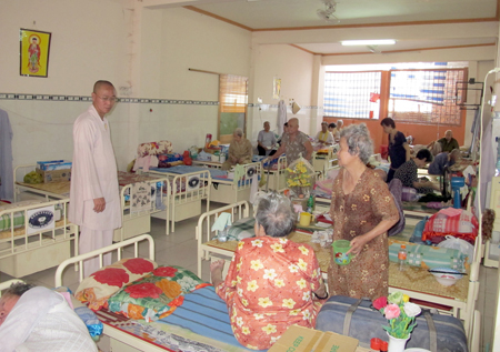 Thầy Duyên trầm ngâm: “Ở hai viện dưỡng lão, có hàng trăm hoàn cảnh khác nhau, nhưng cái chung vẫn là bệnh tật, tuổi già. Do vậy, tất cả các tăng ni chăm sóc các cụ đều được tham gia khóa đào tạo về y tế và điều dưỡng. Tại viện, các tăng ni có thể tự tiêm thuốc, truyền nước hoặc sơ cứu ban đầu. Cái khó khăn nhất tại hai viện dưỡng lão bấy lâu nay là kinh phí. Cái ăn, cái mặc thì tạm ổn, vì có nhiều nhà hảo tâm giúp đỡ. Nhưng mỗi khi có cụ nào ốm nặng phải đưa đi bệnh viện, đó mới là mỗi lo thường trực của chúng tôi. Tiền viện phí và đủ thứ thuốc men, dịch vụ khác, nhưng mà hầu hết các cụ đều tuổi cao, sức yếu... đi viện cũng là chuyện rất thường!”.