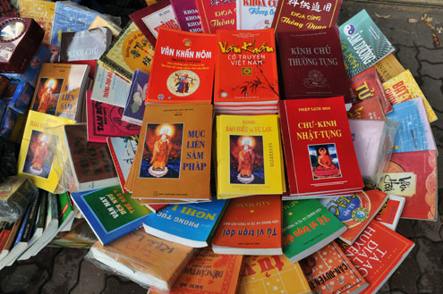 | Sách tín ngưỡng dịp này được bày bán nhiều |
