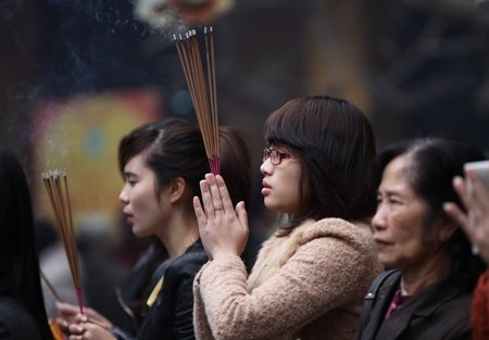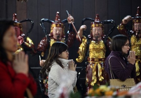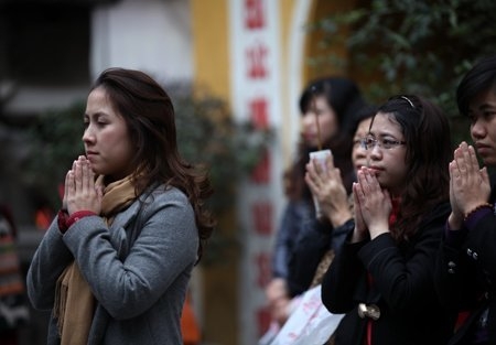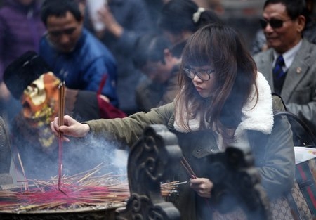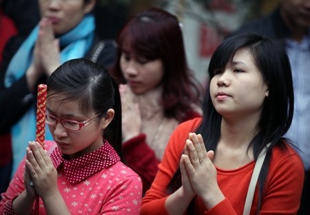 Đầu xuân Quý Tị giới trẻ Nà Nội nườm nượp đổ tới các chùa, đền, phủ... cầu an.