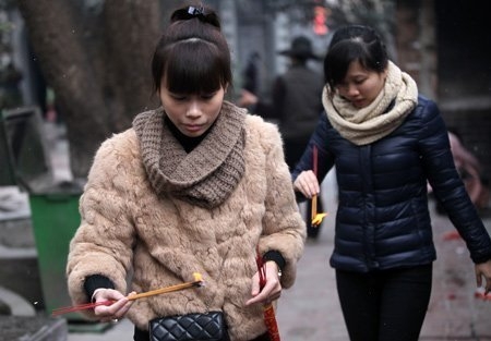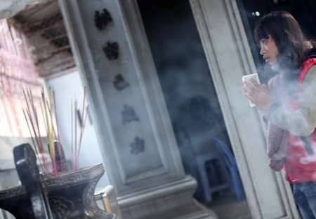 Các cô gái thời hiện đại rất năng đến những ngôi chùa cổ kính cấu an.