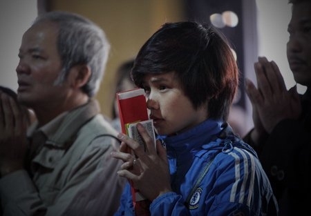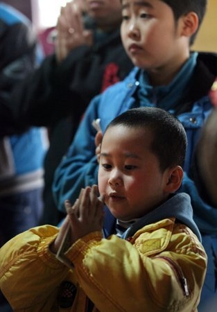 Những đứa trẻ theo người lớn đi chùa cũng chắp tay ước điều ước của riêng mình.
