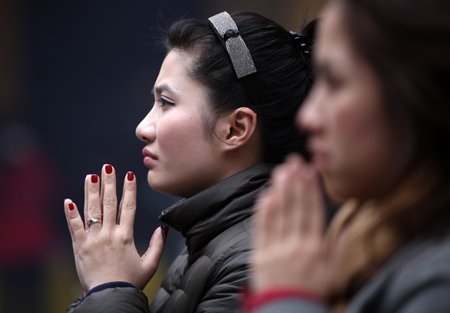 Chắp hai bàn tay một cách thành kính, miệng đọc nhẩm những điều ước tốt đẹp và tin sẽ thành sự thực.