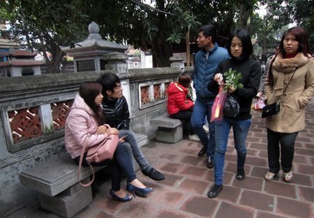Những ngày đầu xuân chùa Hà (Cầu Giấy, Hà Nội), địa điểm nức tiếng cầu duyên lúc nào cũng tấp nập nam, nữ thanh niên đến thắp hương, dâng sớ.