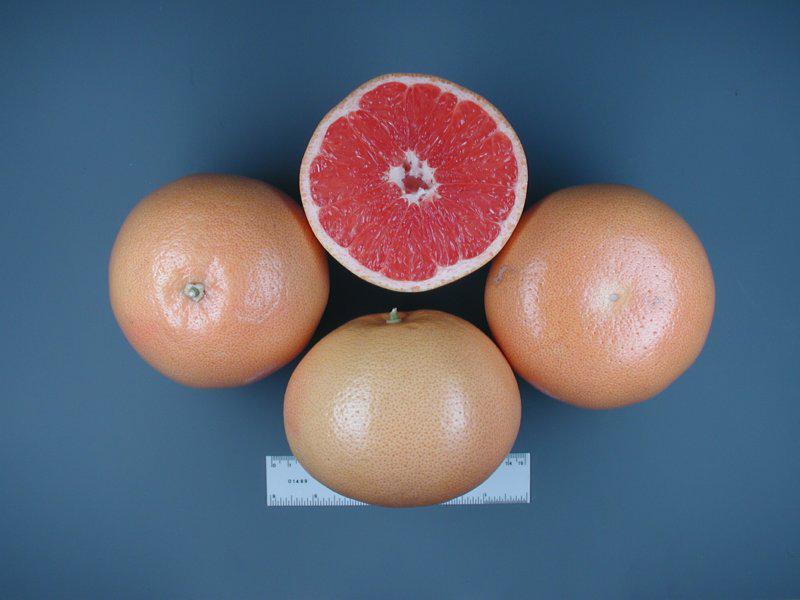 -       Bưởi Star Ruby vỏ mầu vàng, cùi chứa nước mầu đỏ, có hoặc không có hột.