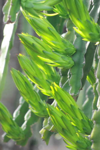 Và trong những ngày này, khi người dân trồng Thanh Long ra sức chăm bón và thúc cho cây ra quả trái vụ, những vườn cây như lột xác xanh mơn mởn trong nắng sớm.