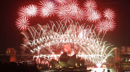 New Zealand, vào 11h GMT, và chỉ 2 giờ sau là Australia đã khai màn cho lễ đón giao thừa với những màn trình diễn pháo hoa tuyệt đẹp.