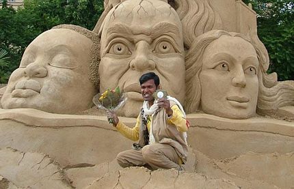 Nghệ nhân Sudarsan Pattnaik, từ thành phố biển Puri của bang Orissa, Ấn Độ, đam mê mãnh liệt nghệ thuật tạc tượng trên cát. Với bàn tay tài hoa, Pattnaik đã biến những hạt cát trở thành các bức tượng tuyệt mỹ.