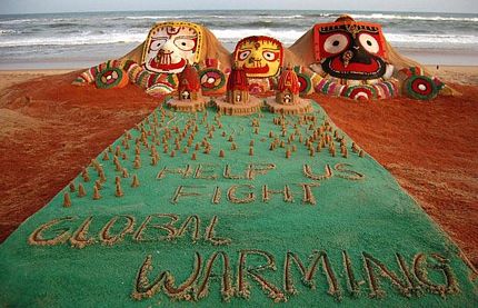 Những bức tượng cát nhằm thu hút sự chú ý của mọi người đối với tình trạng khí hậu nóng lên toàn cầu.