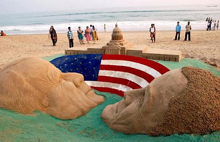 Tượng cát "ăn theo" cuộc bầu cử tổng thống Mỹ 2008 giữa 2 ứng viên Barack Obama và John McCain.