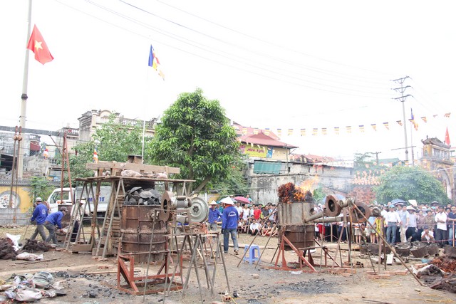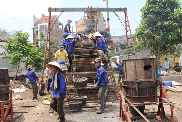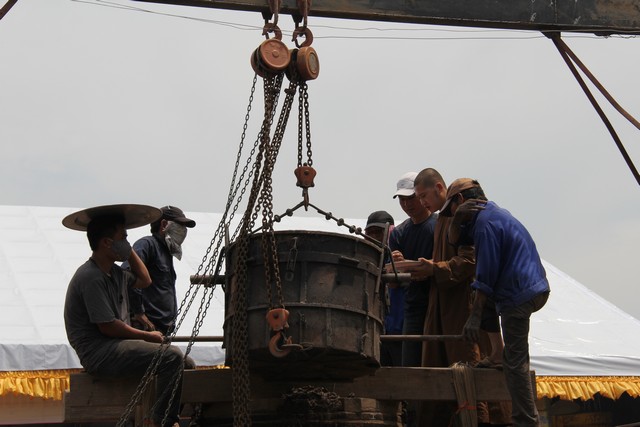 nặng 1 tấn rưỡi, cao 2m3 đường kính 1m2 do Làng nghề đúc đồng Ngũ Xã –