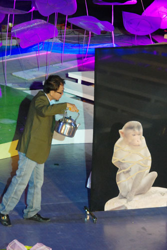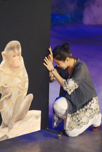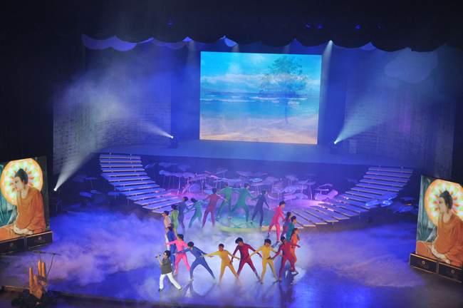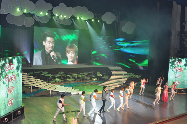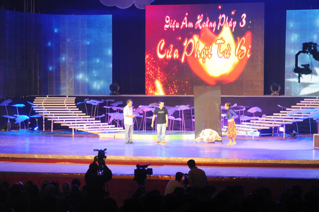 Cửa Phật từ bi nên có cả những ca khúc, tiết mục hướng người xem tới những loài chúng sinh trong đường súc sinh, hình ảnh mẫu tử thiêng liêng của loài gà, loài khỉ, của sự hướng thượng, hướng tới từ-bi trong từng bữa ăn (ăn chay) với Lời gà mái (Trung Hậu). Đó, cũng là xốc dậy định luật nhân quả trong đời sống, trong tam nghiệp ý-khẩu-thân; tất cả đều sẽ được biểu hiện nhưng nếu biết “phóng hạ đầu đao” thì sẽ luôn luôn được ánh từ quang của Phật, Bồ-tát soi sáng, từ đó vượt thoát khổ đau… (kịch Nhân quả công bằng).
