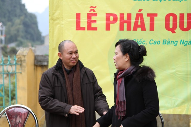 Tại buổi trao quà từ thiện có: TT Thích Đức Thiện - Tổng thư ký HĐTS TW GHPGVN; TT Thích Thanh Phong Ủy viên HĐTS kiêm trưởng ban kinh tế tài chính TW GHPGVN, Đại đức Thích Quảng Lâm Ủy viên Ban Phật giáo Quốc Tế TƯ GHPGVN, bà Mai Thị Hạnh phu nhân Chủ Tịch nước CHXHCNVN, cùng đại diện lãnh đạo UBND huyện Trùng Khánh, các ban ngành chức năng tỉnh Cao Bằng.
