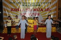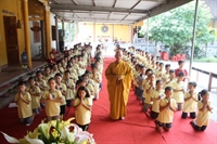 Buổi chiều ngày thứ ba thực sự để lại nhiều cảm xúc đối với các thiện sinh. Các em nhỏ được một lần nữa ôn lại những kỷ niệm cùng quý thầy và các anh chị, dự lễ quy y Tam Bảo. Lễ kết khóa diễn ra trang nghiêm với sự tham dự, chứng minh của chư tôn đức, quý sư thầy, sư cô trong ban tổ chức; các Phật tử về chùa làm công quả, các anh chị tình nguyện viên và hơn 100 thiện sinh về chùa tu học. Nhiều bạn trẻ đã rơi nước mắt khi lắng lòng nghe lời cảm tưởng của đại diện thiện sinh dâng lên các thầy, các cô. Cuối cùng, Đại Đức trụ trì đã có đôi lời tổng kết khóa tu, nhắc nhở các bạn nhỏ cố gắng trở thành con ngoan, trò giỏi, những mầm non đáng yêu của Phật giáo. Khóa tu tuy chỉ diễn ra trong ba ngày, với nhiều khó khăn về cơ sở vật chất, thời tiết nóng bức. Vượt lên trên tất cả là tinh thần tu học của các bạn nhỏ, sự nỗ lực hết mình của ban tổ chức; tinh thần phục vụ của các bạn tình nguyện viên, chắc chắn khóa tu sẽ để lại nhiều ấn tượng tốt đẹp trong lòng thiện sinh và phụ huynh các em. Không mong cầu gì hơn, chỉ mong sao các em trở thành những người tốt, biết sống có đạo đức và tình yêu thương là những gì Thầy trụ trì chia sẻ.